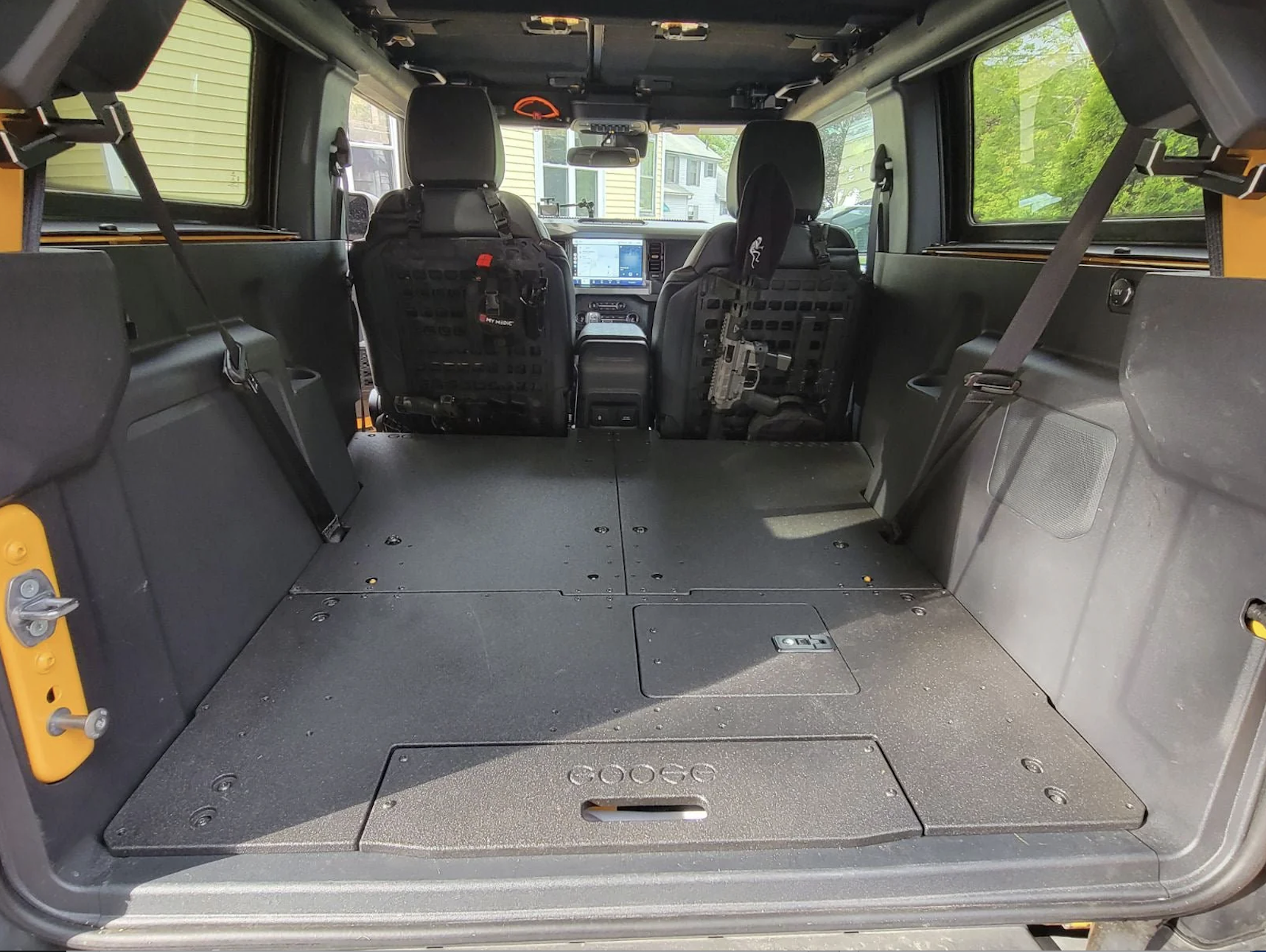 The first modification (I don’t plan many) to the Bronco will be removal of rear seats to make more room for the dogs (and whatever). The photo above shows a kit for this purpose from a company called Goose Gear. Pricey but the Bronco is too nice to junk it up with something home-made.